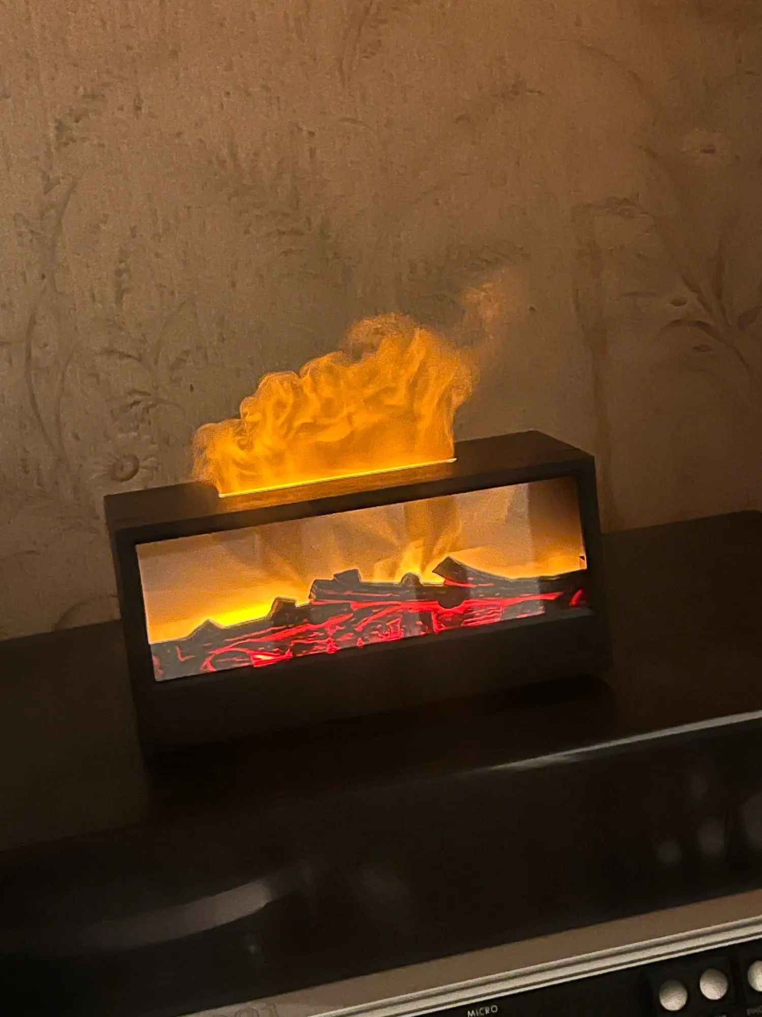 Looks like a real fire, ships fast, and the scent lasts ages. I sleep with it next to me and can actually breathe better, definitely recommend.
